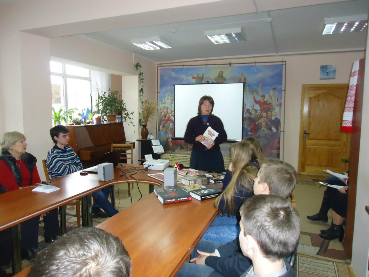 Нову книгу Володимира Сергієнка «Голодомор 1932-1933 років як геноцид українства» представила учням директор бібліотеки Жанна Кручиніна. Під час проведення заходу відбувся перегляд сучасного фільму « Голодомор. Люди правди», документальна кінострічка Бенедикт Бене "Голодомор. Забутий геноцид" та наступні відео: «Ніна Матвієнко про Голодомор», «Василь Шкляр про Голодомор», « Остап Гавриш. Голодомор».