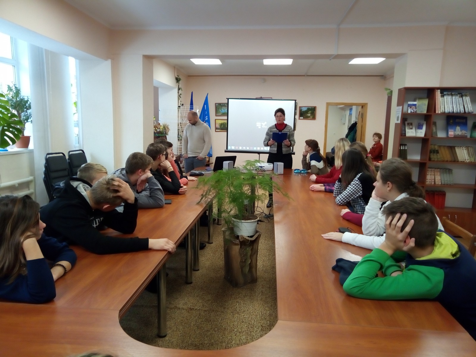 Школярі на одному подиху переглянули 2 короткометражні стрічки 15-го Міжнародного Мандрівного документального кіно про права людини Docudays UA. Соціальна анімація «Коли я чую спів птахів» повідала про жорстокі реалії війни в Африці через свідчення дітей про вимушені переселення, вбивства родичів, бажання їх змінювати цей світ і робити щось добре.