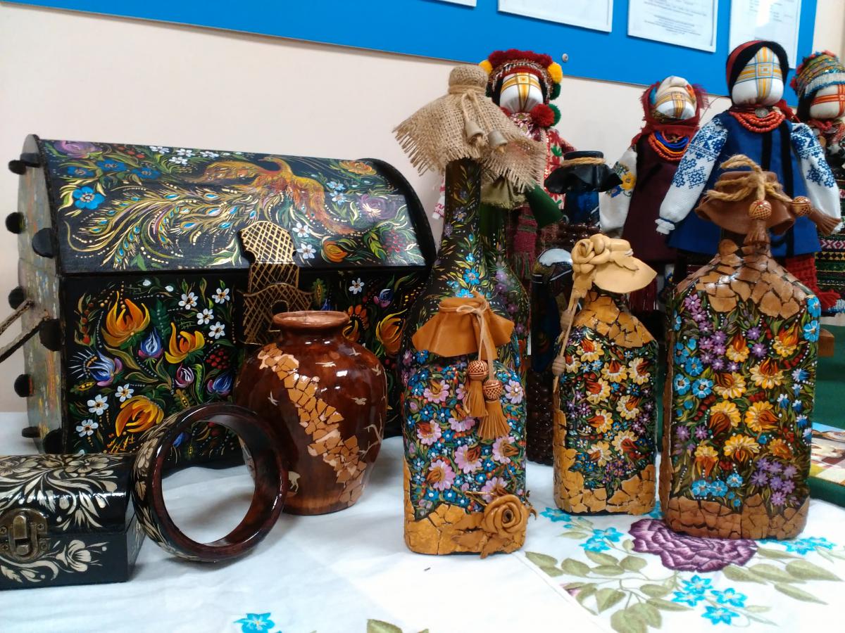 В фойє бібліотеки було розгорнуто виставку виробів декоративно-вжиткового мистецтва. Унікальну виставку сорочок та рушників представили Оксана Гордієць та Катерина Левенко (учасниці тріо «Рідна пісня»); колекцію писанок привезла з Переяслава Капітоліна Шевченко; майстрині з ГО «Новий схід» представили власні декоративні поробки. Знана бориспільська майстриня-лялькарка Олена Кравчун дивувала присутніх своїми ляльками в національних строях. Привертали увагу і захоплення художні вироби Людмили Кущ, виконані в техніці інкрустації та розпису.